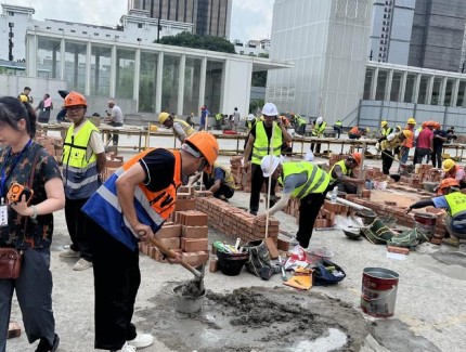 广东阳春酒店改修,砌砖师傅5~6人夫妻对